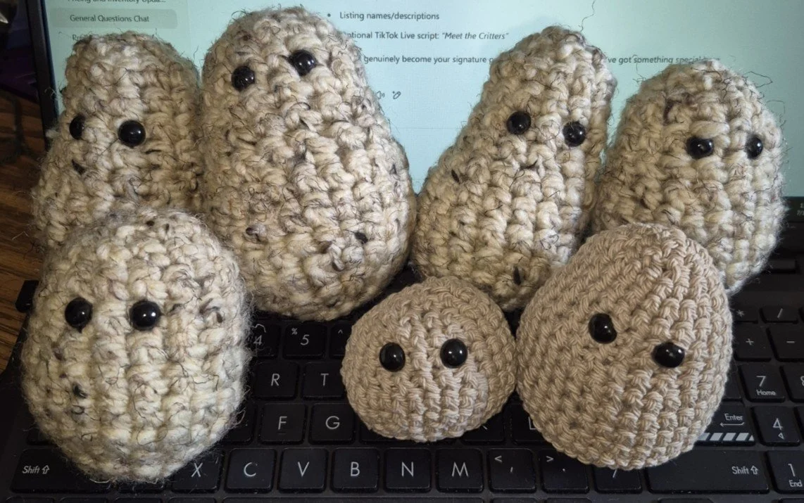 Each of these cozy creations is 100% handmade, one-of-a-kind, and brimming with chaotic charm. These aren’t just plushies—they’re tiny, affirming companions with personalities, birthdays, and a passion for emotional support.